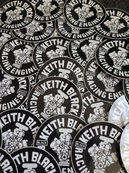 The infamous Keith Black “Black Magic” stickers are back! High Quality 3 1/2 x 3 1/2 inch stickers are available for your race car, shop, tool box, transporter, or your daily driver. Fly the KB colors with pride! Proudly made in the U.S.A.